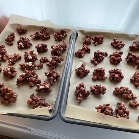 Melt chocolate pieces in large saucepan at 150 degrees.